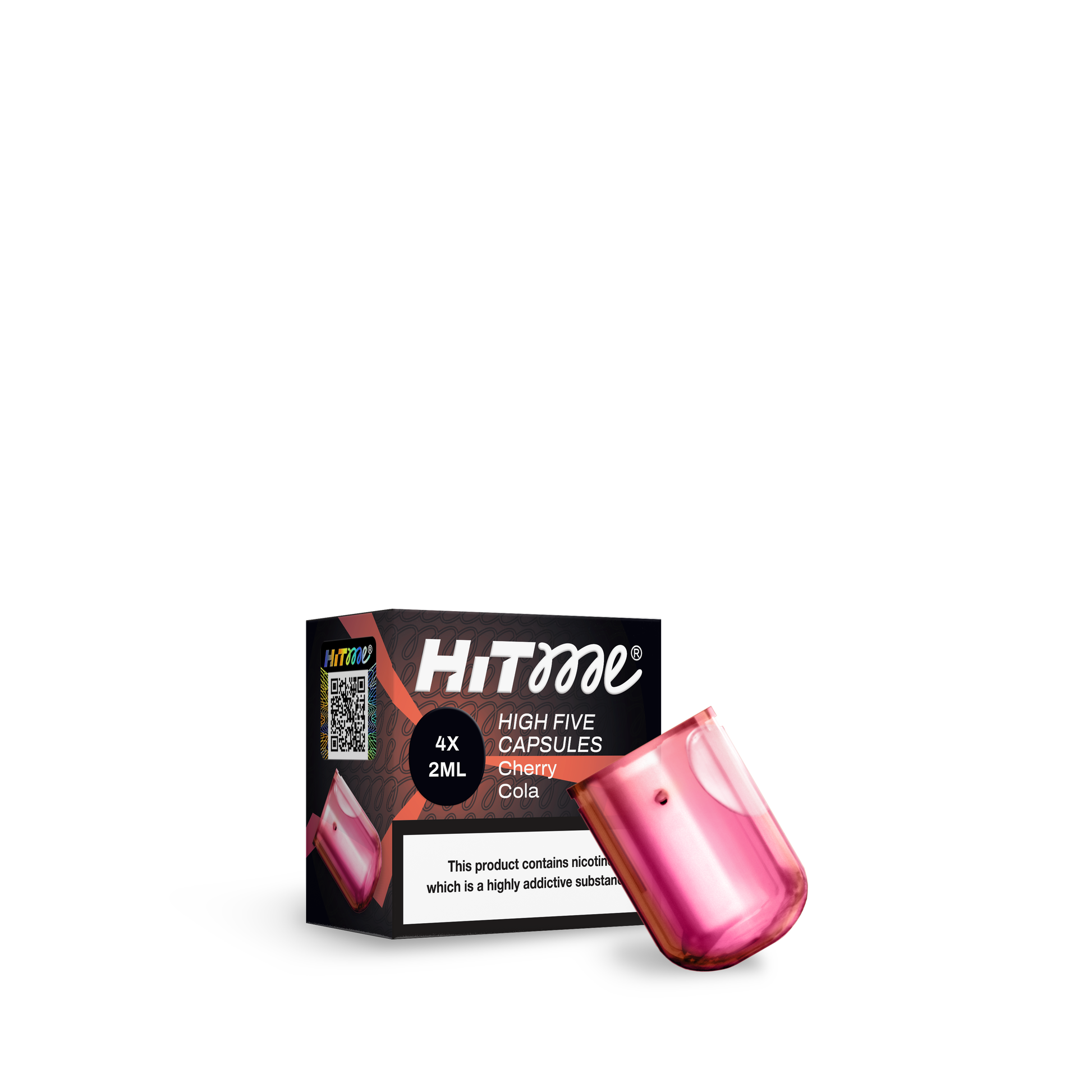 HITME HIGHFIVE KAPSEL Cherry Cola 2% Nikotin — Æsken indeholder 4 forfyldte kapsler.