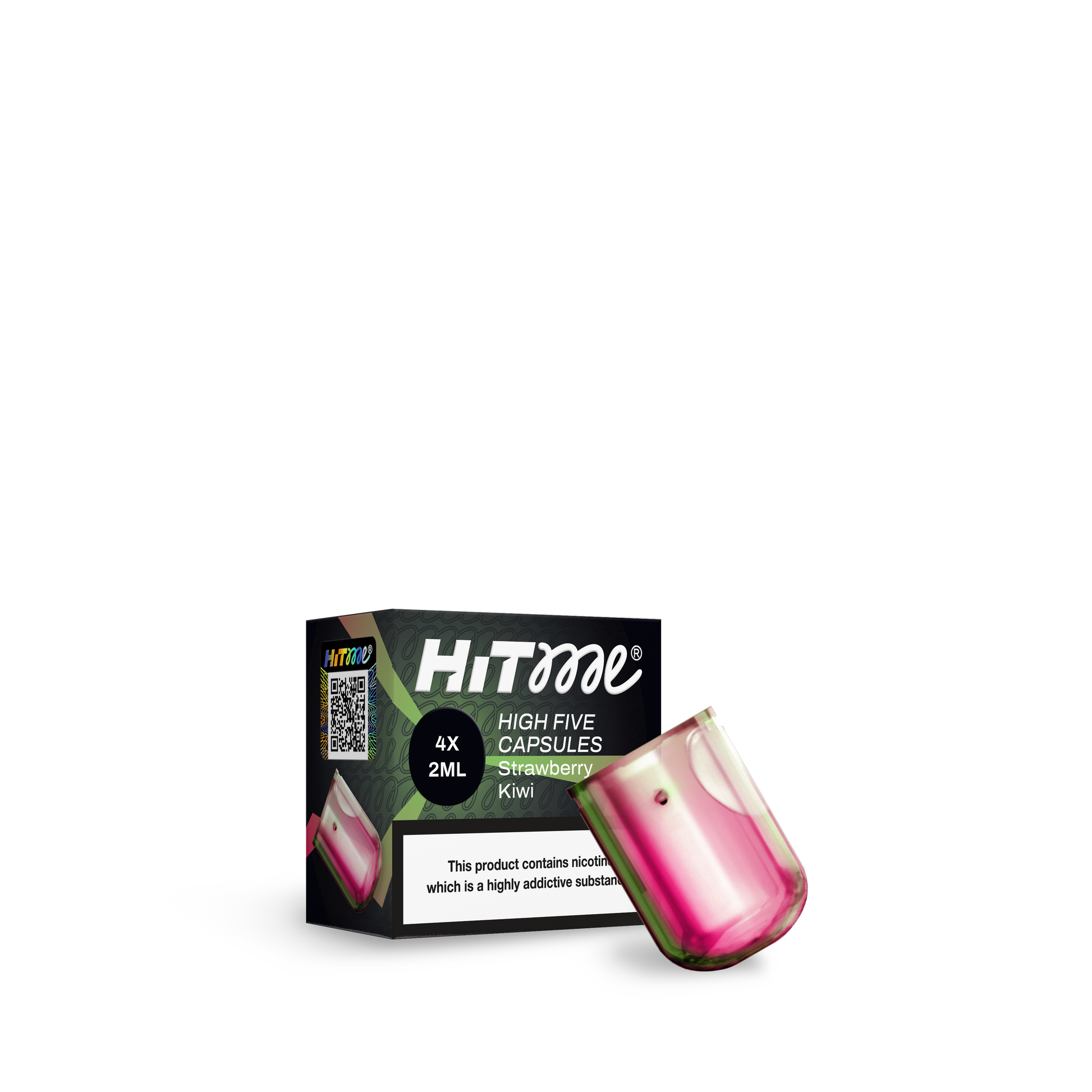 HITME HIGHFIVE CAPSULE Fragola Kiwi 2% Nicotina — La confezione contiene 4 capsule pre-riempite.